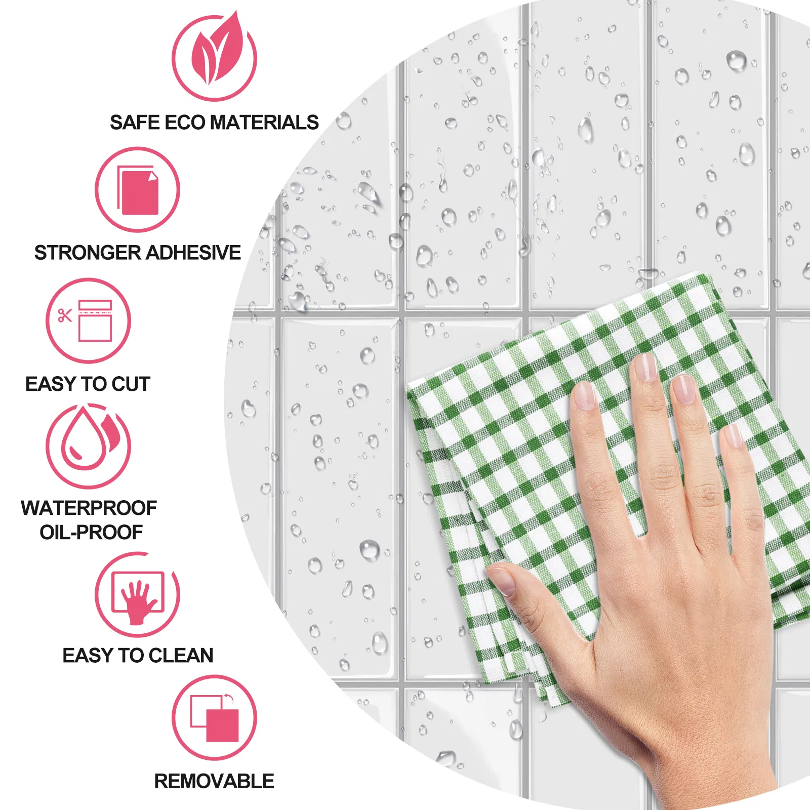 This product is a 5-piece set of wall stickers made of eco-friendly PET material, featuring extremely strong adhesion, cuttable, resistant to peeli peel-and-stick, suitable for home renovation, kitchens, bathrooms, balconies, and more.